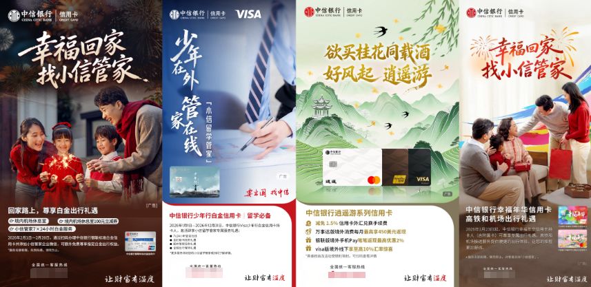 随着春节消费旺季大幕拉开,商务部等9部联合印发的《2026“乐购新春”春节特别活动方案》,以“吃、住、行、游、购、娱”六大场景为核心,打造全域联动、全民乐享的春节消费盛宴。中信银行信用卡积极顺应政策号召,紧抓春节消费旺季机遇,特别推出“幸福回家 找小信管家”春节主题活动,满足不同消费者春节返乡探亲、家庭旅游、留学生活、跨境出行等需求。