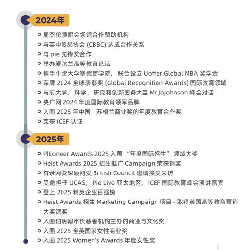 实力铸就荣誉,口碑见证初心。多年来,有录网凭借硬核的资质、优质的服务、亮眼的录取成果,在国内外斩获多项重磅荣誉,成为行业实力的最佳证明。在国际舞台,其成功入围2025年PIE先锋奖,斩获Heist Award国际招生铜奖,成为少数获此殊荣的中国留学机构,彰显了中国留学服务的专业能力获得国际教育界的高度认可;在国内,先后荣获中央广播电视总台国际在线年度出国留学机构、央广网2024年度国际教育领军品牌、腾讯教育年度影响力留学服务品牌等多项荣誉,品牌影响力与行业认可度持续攀升。