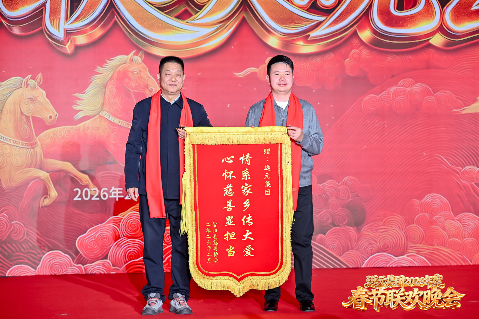 当一场温情相聚与一份来自故土的荣誉不期而遇,其意义便超越欢聚,成为一次深刻的价值宣示。2026年2月9日,西安锦江国际酒店灯火璀璨,远元集团2026年春节联欢晚会在此温情落幕。晚会开场,一场特殊的授旗仪式成为全场焦点:紫阳县人大常委会原主任、紫阳慈善协会会长张教志登台致辞,对远元集团反哺家乡、扶贫济困的突出贡献给予高度肯定,随后代表家乡人民向集团颁发锦旗,郑远元董事长登台接旗,锦旗承载着故土深情与社会认可,也凝聚着全体远元人的责任与大爱,现场掌声雷动、暖意绵长。