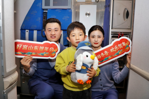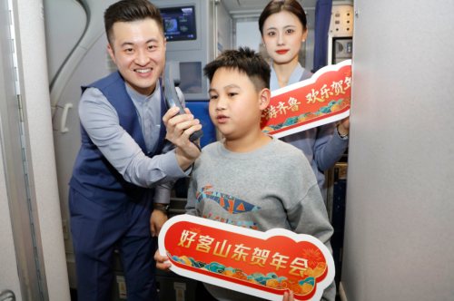 “各位旅客,今天是北方小年,我们特别准备了‘云端送福’环节,邀请大家说说对家人的牵挂、对朋友的问候,分享与山东的故事,或是对冬日齐鲁的期待……”随着乘务长的温馨广播,客舱内洋溢着节日的暖意。