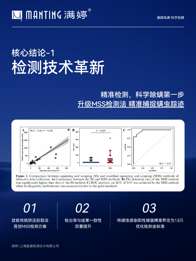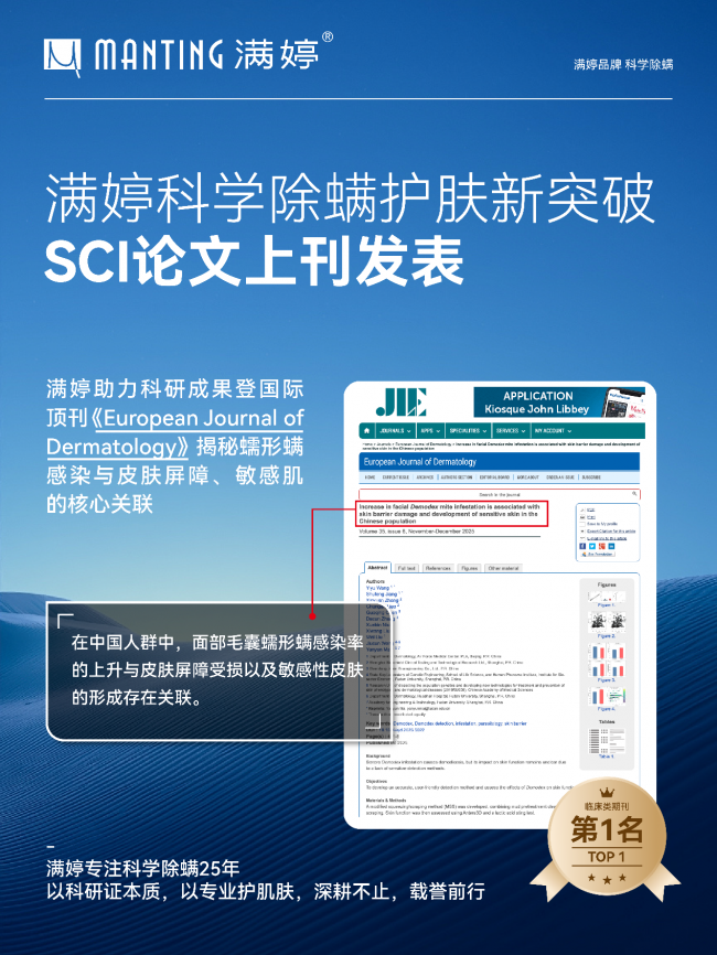 满婷联合上海馥盾检测技术有限公司发布阶段性科研成果,围绕蠕形螨检测方法优化、皮肤屏障影响机制以及感染风险因素分析三方面,系统提出新的技术路径,为行业提供更具科学基础的解决方案。