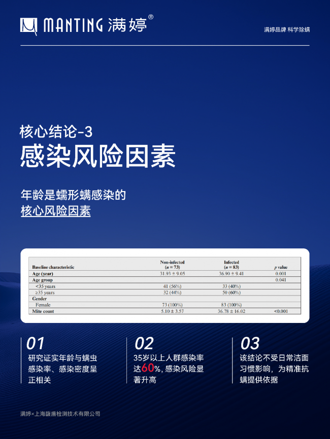 这一升级不仅是采样方式的改良,更意味着除螨领域首次在方法学层面建立可验证、可对照的统一评价框架。年龄成为核心风险因素:感染率呈显著分层