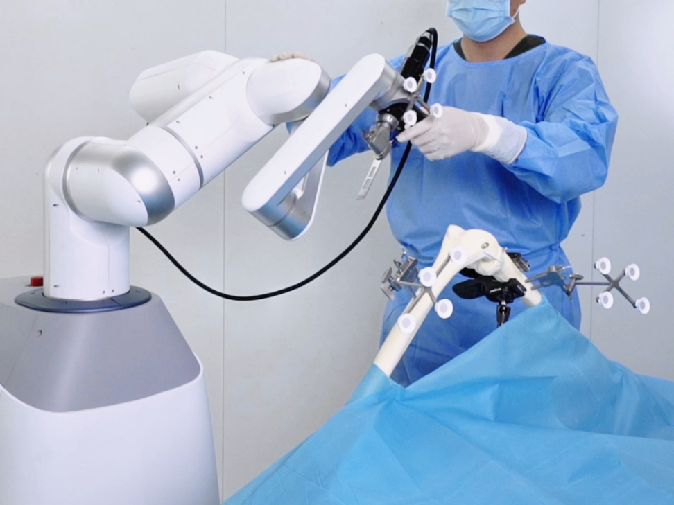 在临床应用上,作为全国首个针对骨科手术应用场景完全自主研发的专用机械臂,该机器人表现出的稳定性与实用性,给主刀医生带来了“如身使臂、如臂使指”的人机协同体验,搭配“如影随形”智能导航系统,定位精度达亚毫米级,可满足关节置换、脊柱、创伤等多种手术需求。