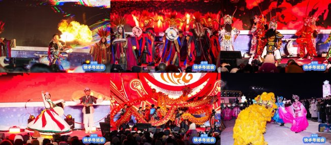 整场开幕式中,东北特色文化与新春年味无处不在,从贯穿全场的东北大花元素,到引发大合唱的何玉《大东北我的家乡》、喜庆感满满的东北二人转,都让人充分感受到了欢腾热闹的东北过年氛围。其中,赵大牛热力献唱《东北超》,上头的旋律和欢快的节奏引爆全场雪地蹦迪的高燃氛围。丫蛋儿带来《一路向东北》和《东北欢迎你》歌曲串烧,以嘹亮高亢的嗓音和共鸣感强的歌词,唱出了东北人的家乡情怀与热情好客,直接燃炸全场。快手达人雪饼猴演绎精彩的猴耍经典好戏,炫目的耍金箍棒和转手绢表演,以及他与外国粉丝的搞笑互动,不断引发现场的阵阵欢呼。