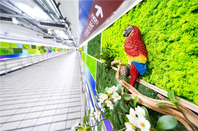 地铁复兴门站作为北京西城区金融街核心区域的重要交通枢纽,连接多条地铁线路,是客流量极大的城市交通节点,更是展现城市形象的重要窗口。此番迎来全新美化升级,永生绿植错落缀于墙面,青翠草木相映成景,灵动的花鸟造景点缀其间,让地铁换乘通道变身诗意的空间。行走其中,目之所及皆是生机,自然与城市公共空间巧妙融合,氛围感拉满,为步履匆匆的乘客带来一份春日的温柔与惊喜,也让金融核心区的通勤路多了几分浪漫与生机。