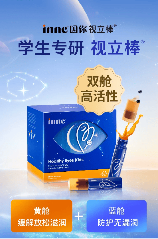 基于这一广泛需求,德国高端儿童营养品牌inne(中文名:因你),推出学生专研护眼产品——inne视立棒®护眼饮,通过花青素放松睫状肌+明目草促进血液循环,并融合叶黄素的蓝光防御效用,全民守护孩子的视力。据临床试验证明,inne视立棒®有助于视网膜和黄斑健康,同时对眼轴增长有延缓控制作用,以科学分舱、精准营养的产品创新,重新定义儿童青少年护眼新标准。