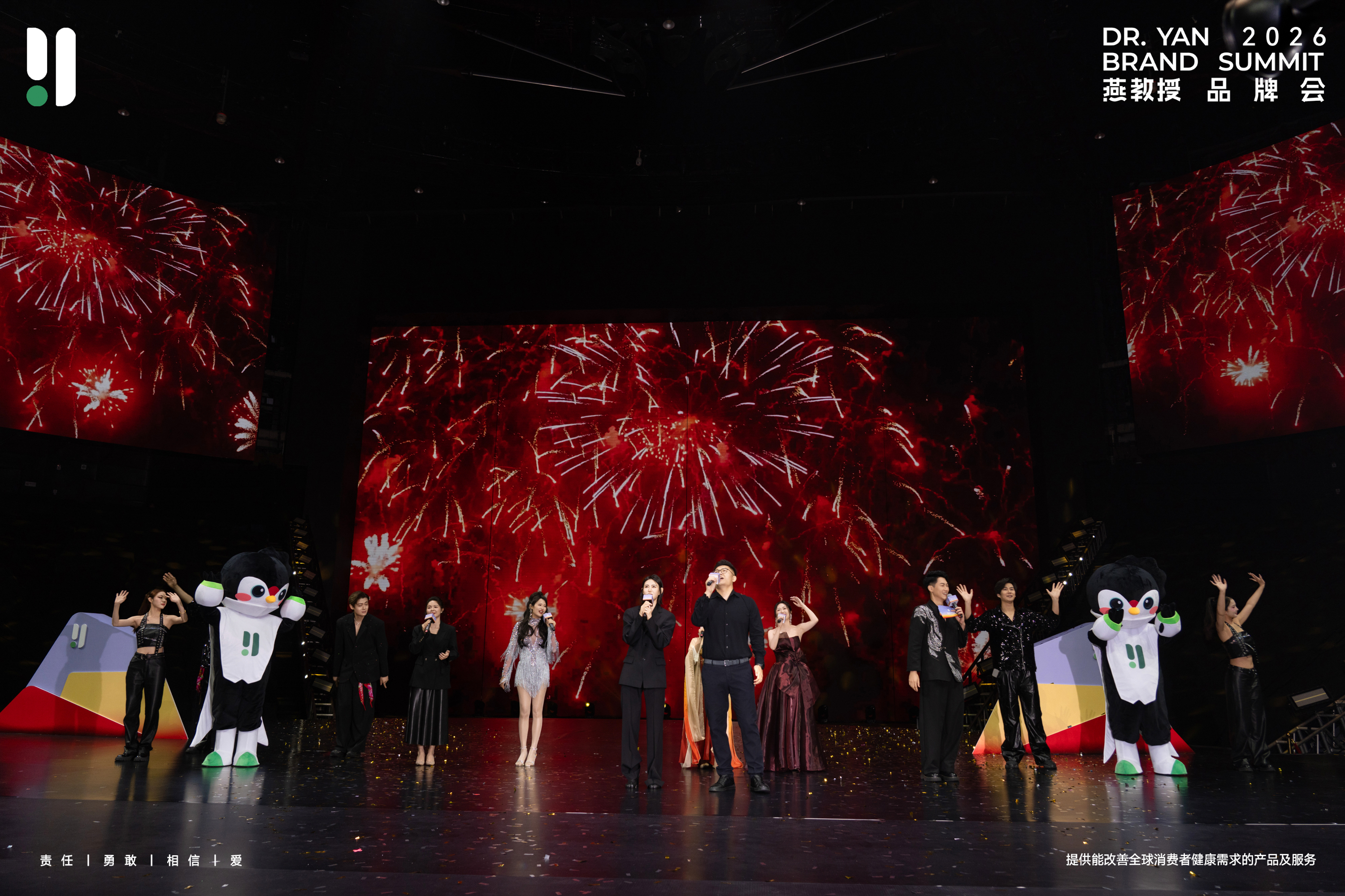 舞台上,经销商们自信绽放,以《有山有海有你》、《流芳》、《野心家》等精彩节目展现了燕教授人的多元魅力。压轴环节,CEO张硕先生与全体演职人员共同唱响《友谊地久天长》,将现场氛围推向高潮。