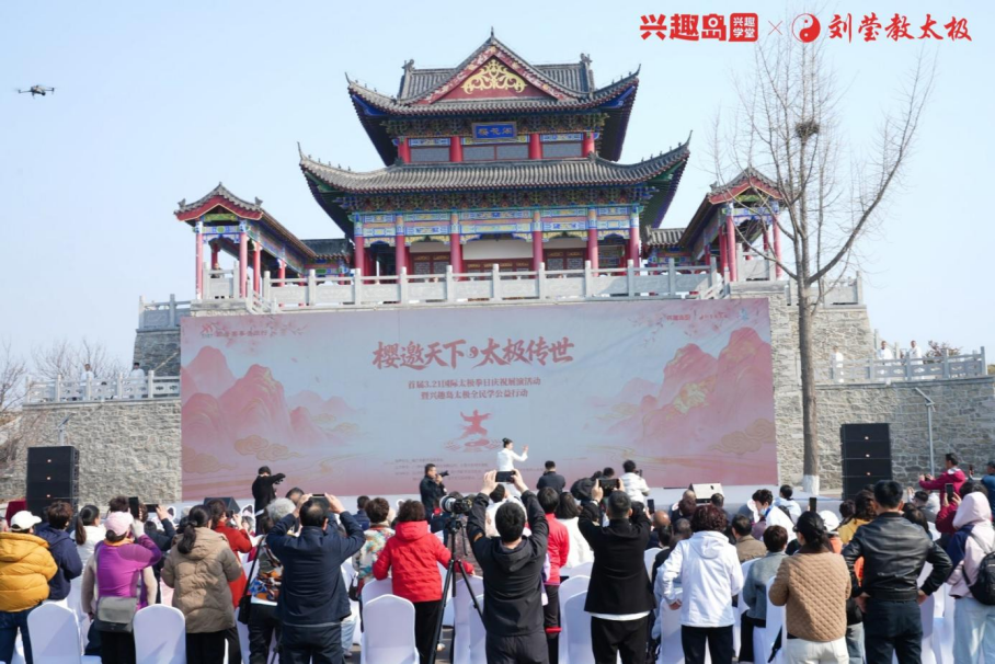 千余名太极爱好者在漫天飞舞的樱花中同步起势,动作舒展如云卷云舒,气息沉稳若山河共鸣。这场千人共武的盛景,将“阴阳平衡、刚柔并济”的东方哲学转化为可观、可感、可参与的集体实践,不仅展现了太极拳深厚的群众基础,更彰显了其作为国家级非物质文化遗产在新时代的蓬勃生命力。