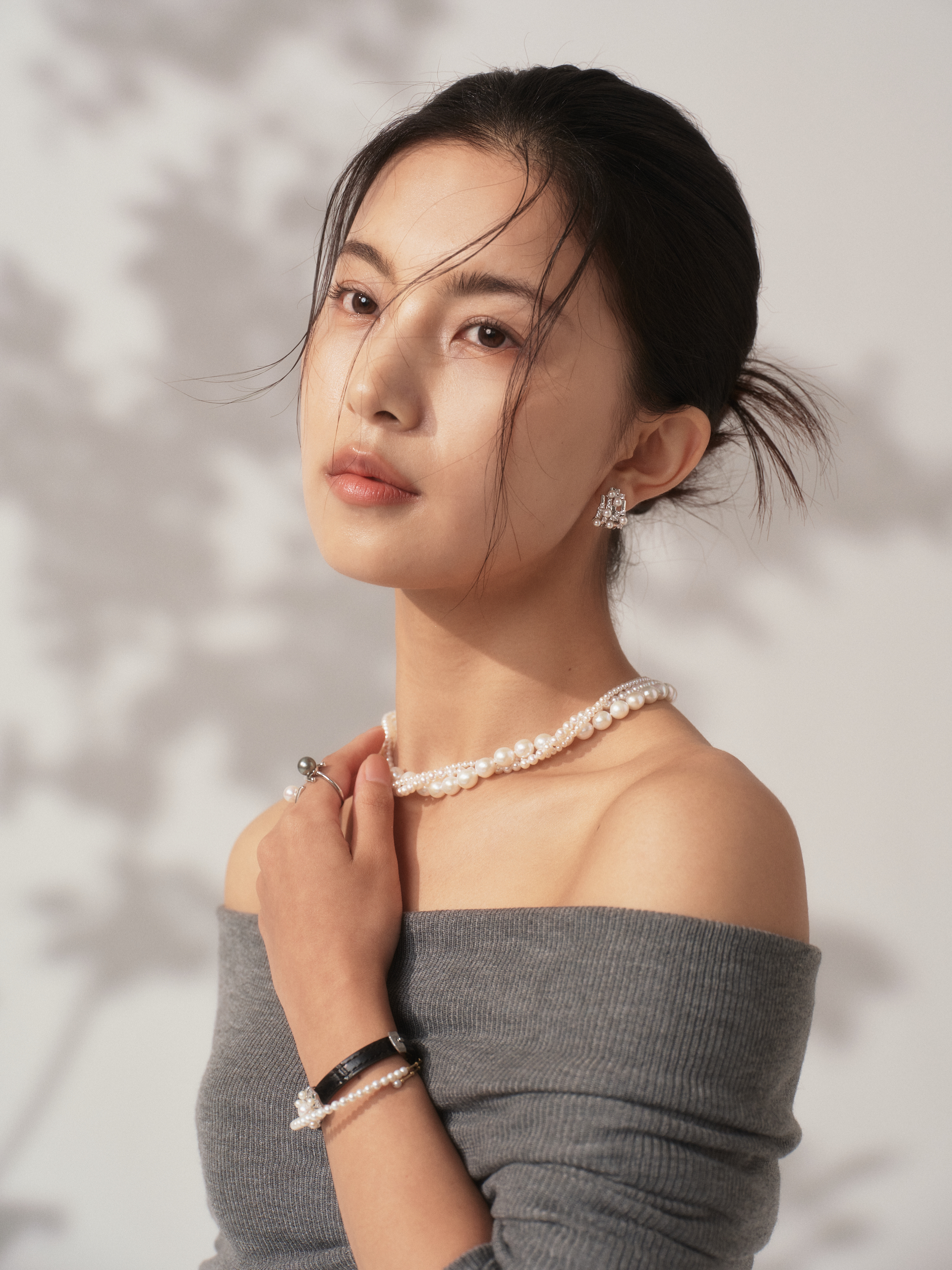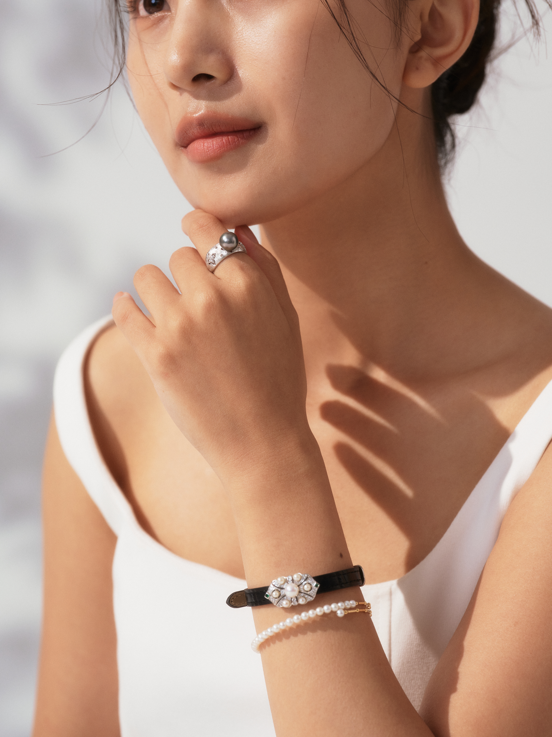 春日出游的穿搭乐趣,在于叠穿打造的丰富层次感。“星辰律动手饰”将传统珍珠与现代腕表结构大胆融合,皮质表带勾勒利落线条,温润的淡水珍珠错落点缀其间,既有珍珠的优雅质感,又不失腕表的干练格调。这款手饰兼容性极强,既能搭配干练的休闲西装,打造通勤、春游兼顾的利落造型,也能搭配甜美的春日裙装,增添温柔氛围感,轻松驾驭多种春游穿搭风格,让腕间时光尽显春日诗意。