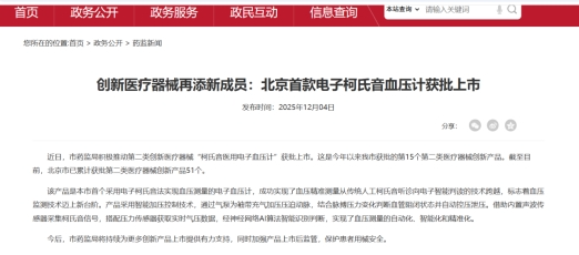 2025年12月,在中关村科学城、北京市药监局等多部门的全程指导下,汉王AI柯氏音血压计成功获批北京市创新医疗器械并完成注册上市,从研发到获批仅用时8个月,创下了医疗科技成果转化的“海淀速度”。