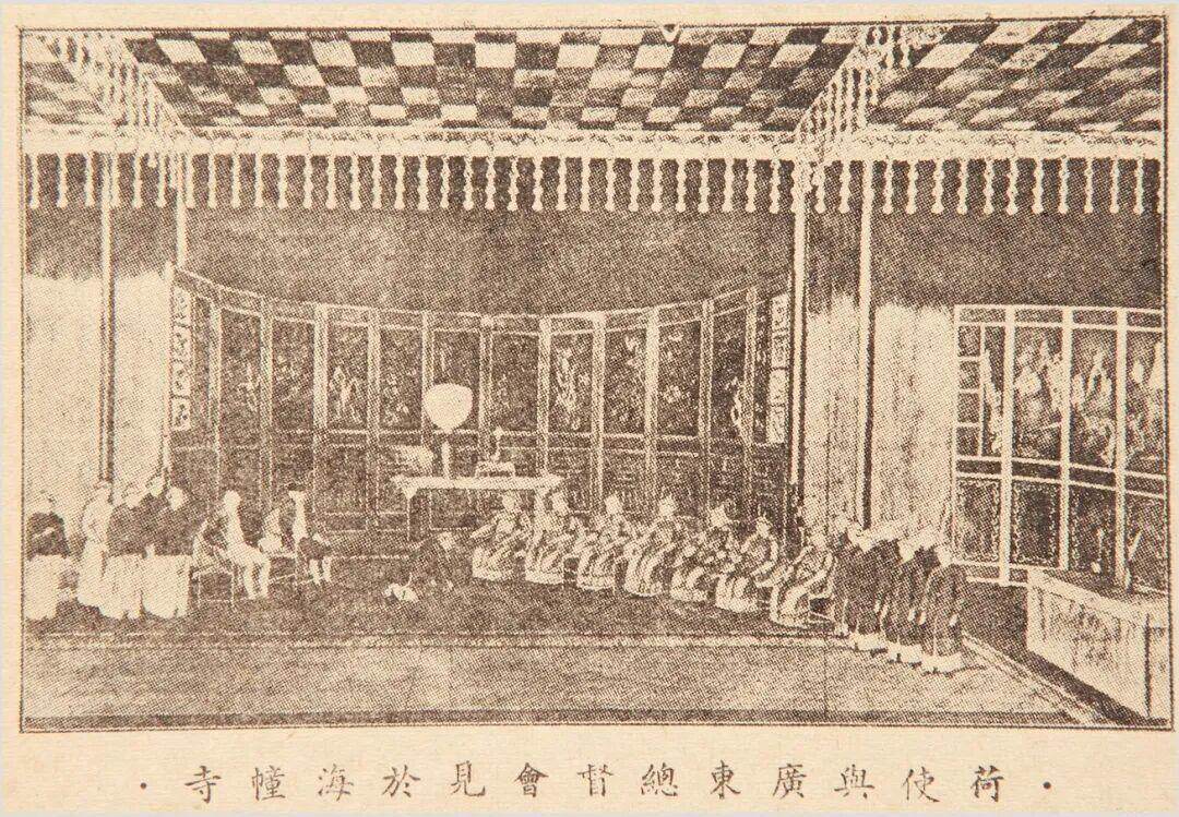 荷使与广东总督会见于海幢寺。《南洋学报》第三卷第一辑,1936年9月发行。本图来自广东省博物馆官方公众号