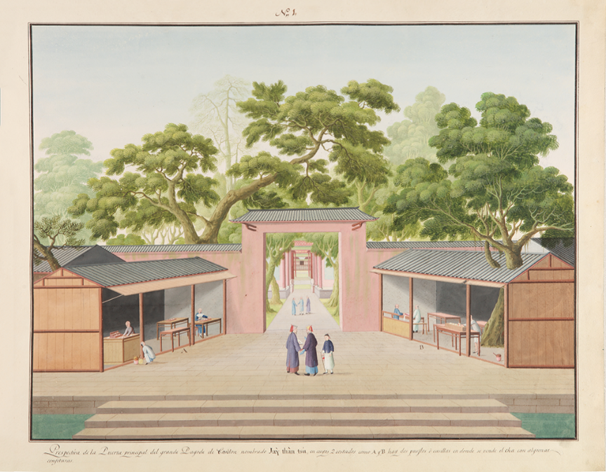 口通商”时代格局下,它一度承担了特殊的涉外交流功能,被时人视为清朝在南方的“重要会客空间”。同时,寺院的绿瓦红墙又频繁出现在外销画中,成为远渡欧洲的视觉“中国”——中华文明的具象载体。