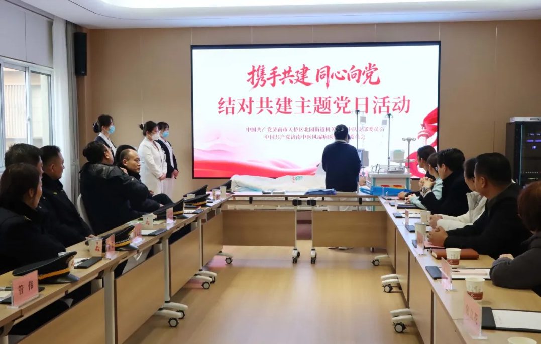 为深化基层党建融合,凝聚服务群众合力,近日,济南市天桥区北园街道机关执法中队支部委员会在刘猛猛、靳倩、宋军、姚朋、管伟等支部领导的带领下莅临济南中医风湿病医院,与济南中医风湿病医院党支部联合开展“携手共建 同心向党”主题党日活动。济南中医风湿病医院党支部书记及党员对执法中队的到来表示热烈欢迎。