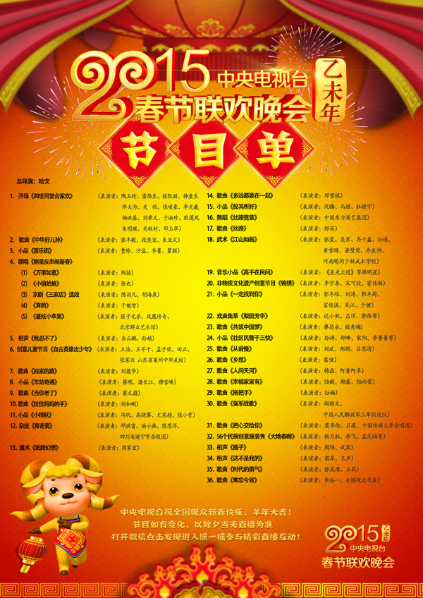 这是央视羊年春晚节目单。