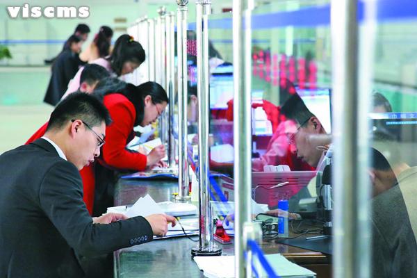 3月31日下午,在日照市房地产交易中心,市民正在窗口前办理业务。据工作人员介绍,当日前来大厅办理业务的市民数量相较平日没有明显变化,但打进电话咨询房产新政的市民有所增加。 据了解,中国人民银行、住房城乡建设部、中国银行业监督管理委员会30日联合发文,调整个人住房贷款政策,二套房最低首付款比例调整为不低于40%以及二手房营业税免征期限由5年改成2年。 (记者 冷炳豪 摄)