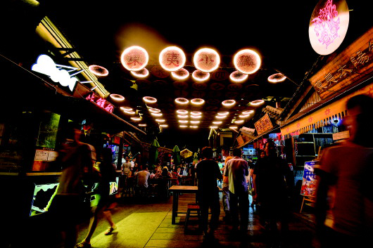 东夷小镇市场发展部的杨锴介绍,自小镇创立之初,这里就在不断地创新运营机制。小镇实行规划定位、品牌营销、平台共享、招商选商、管理服务“五统一”模式,对特色美食街采取“统一装修、免房租、联营扣点、末位淘汰”政策,着重打造“一店一品一产业”商业模式,确保业态配比适宜,减少低端同质化竞争。目前特色美食、民宿客栈、文化展馆、手工文创、休闲酒吧五大类别260余家商户(其中联营商户190家)对外营业。