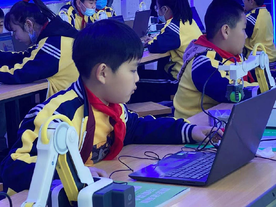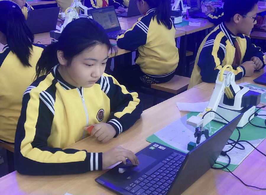 “来这个课堂之前,我对机械臂并不了解,通过几周的学习,知道了它是怎么组成的、如何操作,现在很喜欢这个,以后还会继续学下去。”六年级学生肖玉茹说。