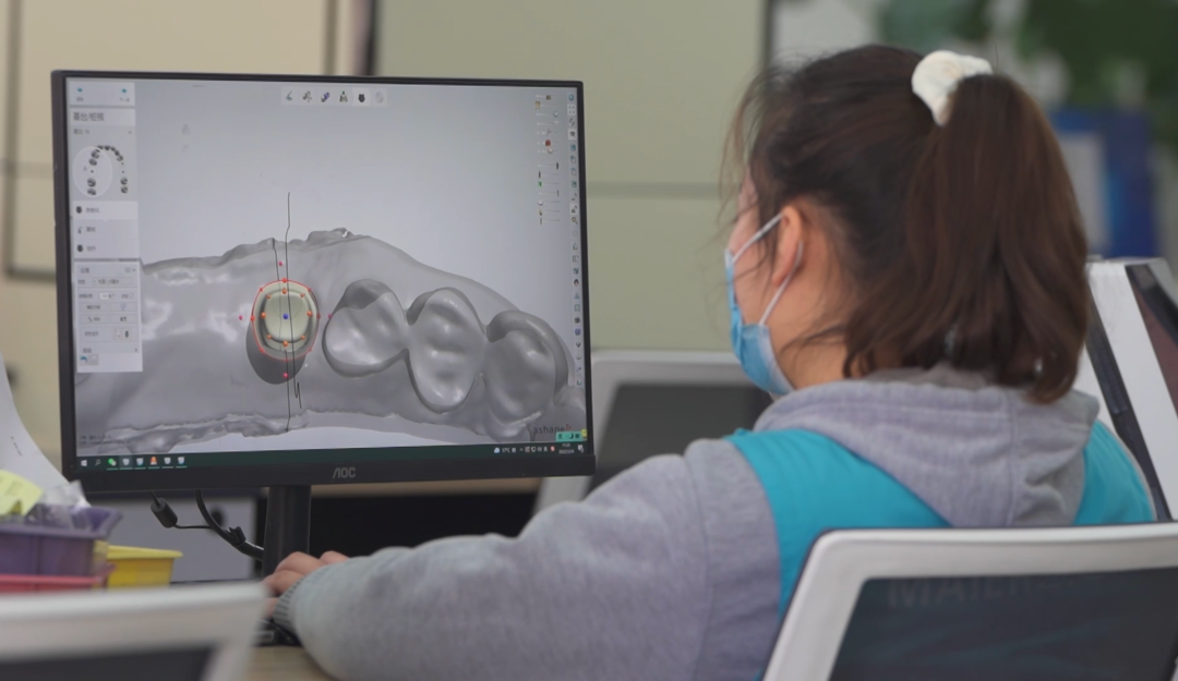 在山东迈尔医疗科技有限公司,工作人员正通过大数据平台,对国内外口腔诊疗机构传输来的患者口腔数据进行个性化塑膜设计。