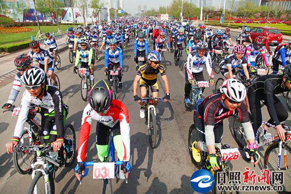 4月24日,自行车选手们在进行比赛。当日,由日照市体育局主办的2016年日照“捷安特杯”150公里骑行耐力赛在市人民广场举行。本次比赛吸引了来自济南、烟台、青岛、日照及连云港等省内外11个地市的600余名选手参加。参赛运动员从市人民广场出发,途经万平口、国家森林公园、五莲山、九仙山等景区,最后返回市人民广场,骑行路线全长150公里。 (记者 潘一凯 摄)