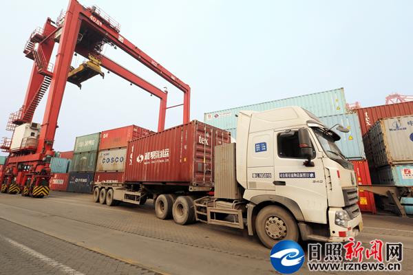 4月26日,在日照港集装箱站,货车正在装卸进出口集装箱。 记者从日照海关获悉,一季度,日照口岸中韩班轮进出口集装箱货物9129标箱,同比增长171%。同期日照对韩国进出口总值为37.9亿元,占我市外贸进出口总值的20.6%。进出口货物涵盖汽车发动机、变速箱零部件、农产品、石材以及义乌小商品等多个种类。