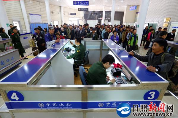 4月28日,日照边检站民警为出入境游客办理通关手续。 今年,我市赴韩旅游持续升温,一季度出入日照口岸旅客人数达3万余人,同比增长59.1%。随着“五一”小长假的到来,利用节假日赴韩旅游的旅客人数开始出现较大幅度的增长,最近三天,赴韩旅游游客累计达2500人次,同比增长12.8%。 (记者 惠雪烨 摄)