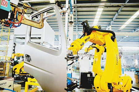 12月6日,机器人在五征集团汽车生产线上。今年五征集团投资9300万元实施以涂装、焊接和冲压自动化为重点的自动化智能升级改造,新上15台机器人,新建自动化冲压生产线,从板材上线到冲压全部由自动化设备操作完成。 今年以来,五莲县落实“工业强县”战略,加大对企业技术改造管理力度,共实施计划投资额50万元以上的新上和技改项目113项,完成投资35.4亿元,进一步提升了工业企业的竞争实力和产业建设水平,推动全县智能制造水平稳步提升。 (记者 路杰 摄)
