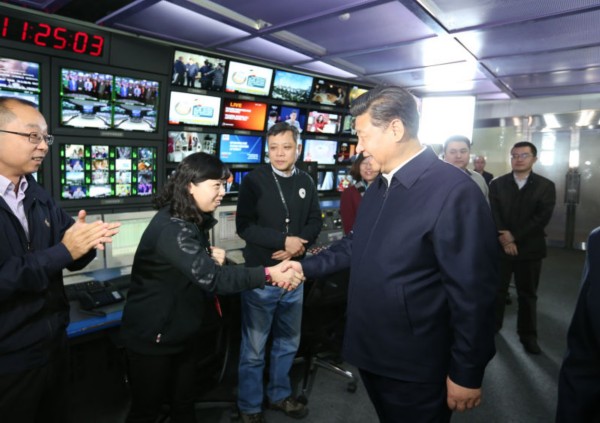 19日上午,习近平在中央电视台调研,来到总控中心同位于华盛顿市中心的北美分台视频连线,了解分台建设运行情况。当得知分台成立4年,每天提供5小时、全自制的节目,90%的工作人员来自当地,习近平对此表示肯定,向分台全体人员致以亲切问候和良好祝愿。