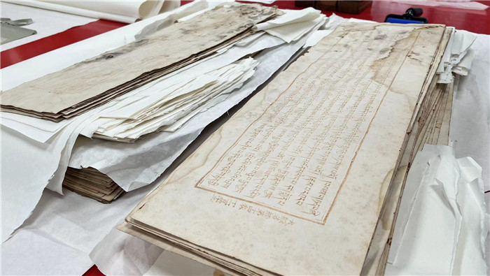在国家图书馆的古籍修复中心,一册散页的《大藏经·甘珠尔》正在修复中。这部古籍因严重霉变已破损不堪。国家图书馆古籍馆文献修复组组长胡泊介绍,这部《大藏经》属于严重的一级破损状况,修复工作不仅涉及表面清理,还需通过药剂和精密仪器作深度处理。