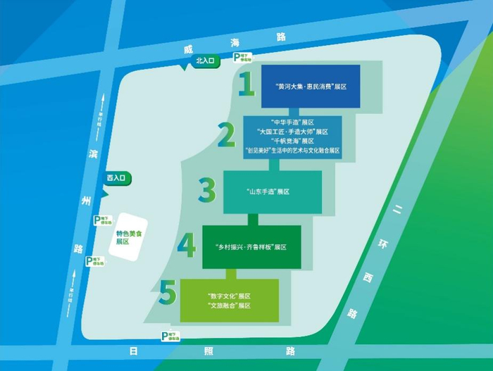 展会围绕文化两创、乡村振兴、山东手造、数字文化等重点主题,在山东国际会展中心共设置9个展区。