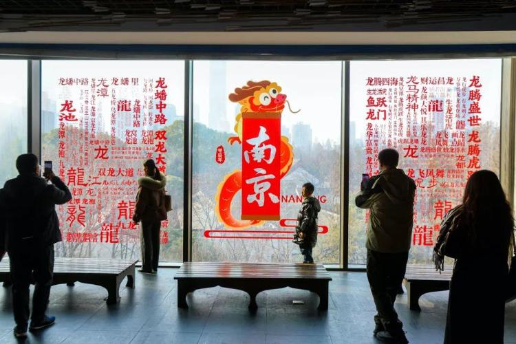 ——六朝博物馆有一面落地窗,是观赏城市美景、感受历史文化的窗口,也是连接古今未来的公共文化空间。去年经网友推荐,这扇窗登上热搜。今年春节,这扇窗还贴上别具一格的“龙年窗花”,吸引更多游客市民打卡拍照。